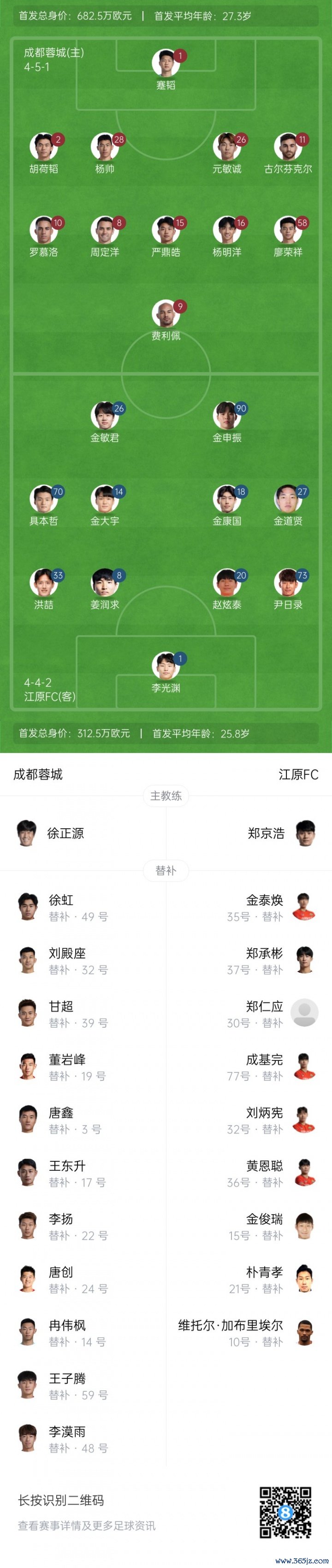 蓉城vs江原杆位:蓉城尽遣主力!罗慕洛、费利佩先发,周定洋登场