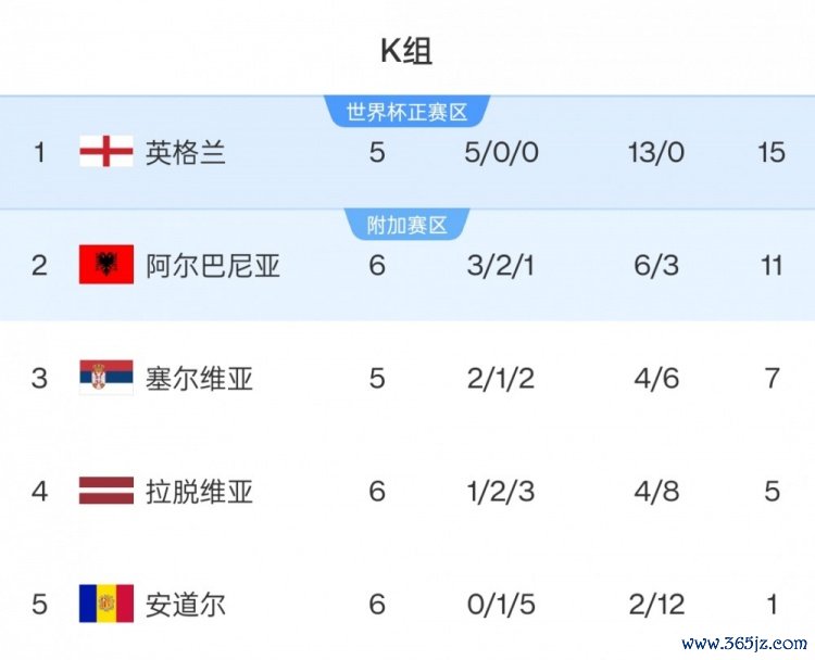 10月12日讯 世预赛欧洲区小组赛K组,塞尔维亚主场作战 0-1不敌阿尔巴尼亚遭遇两连败,英格兰因此接近锁定小组第一晋级下一轮 世界杯赛 ,而塞尔维亚需与阿尔巴尼亚角逐 附加赛名额。