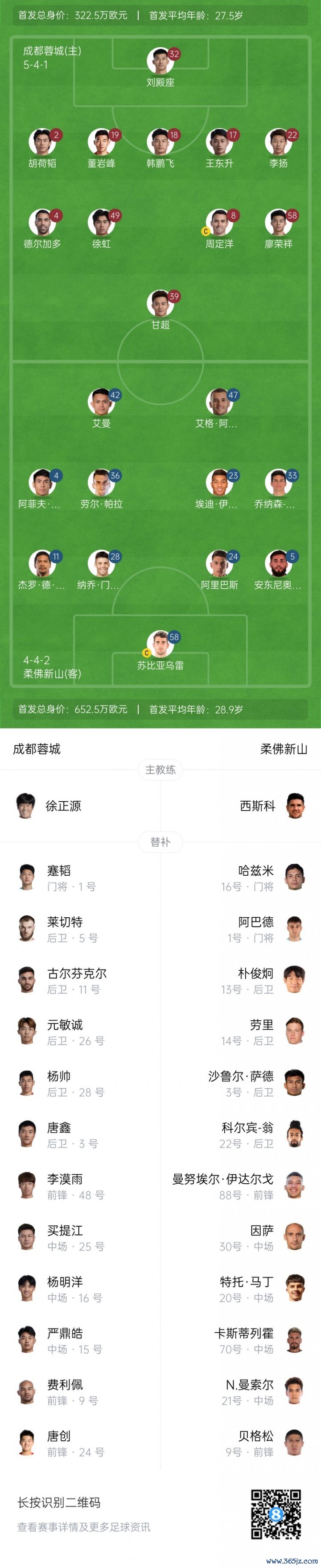 成都蓉城后备 :1-蹇韬、3-唐鑫、5-提莫-莱切特(F)、9-费利佩(F)、11-古尔芬克尔(F)、15-严鼎皓、16-杨明洋、24-唐创、25-木热合买提江-莫扎帕、26-元敏诚、28-杨帅、48-李漠雨