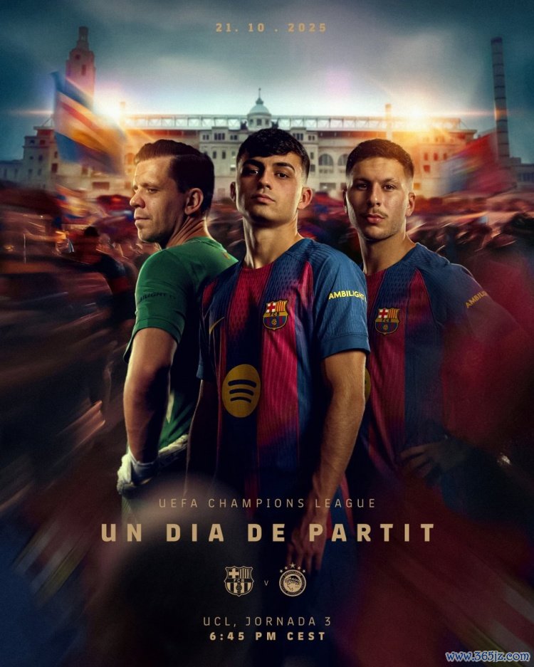 10月21日讯 欧冠职业联赛 阶段第3轮,巴萨主场作战 对阵奥林匹亚科斯。赛前,巴萨官方发布赛前海报,巴黎圣日耳曼直播吧并写道:“欧冠赛事 日”。
