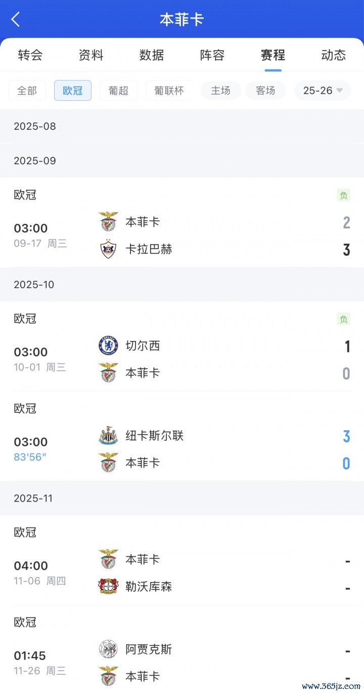 客场应战 完败!本菲卡欧冠遭遇3连败,未来两轮战勒沃库森、阿贾克斯