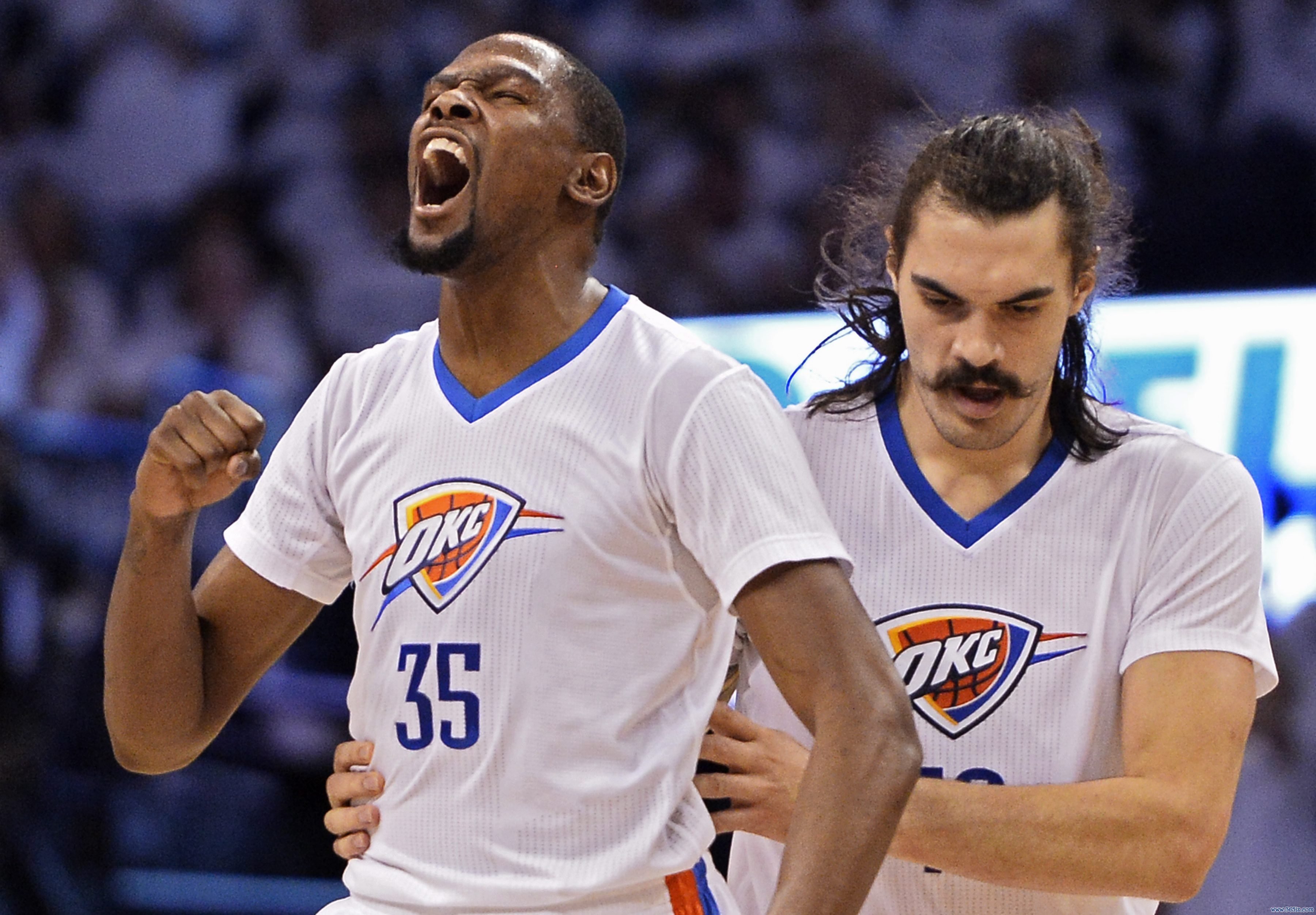 亚当斯与杜兰特曾在雷霆当过3年队友篮球NBA。