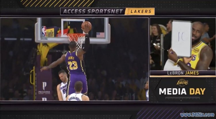 主持人邀请詹姆斯对自己湖人生涯的几大隔扣打分(10分制)。