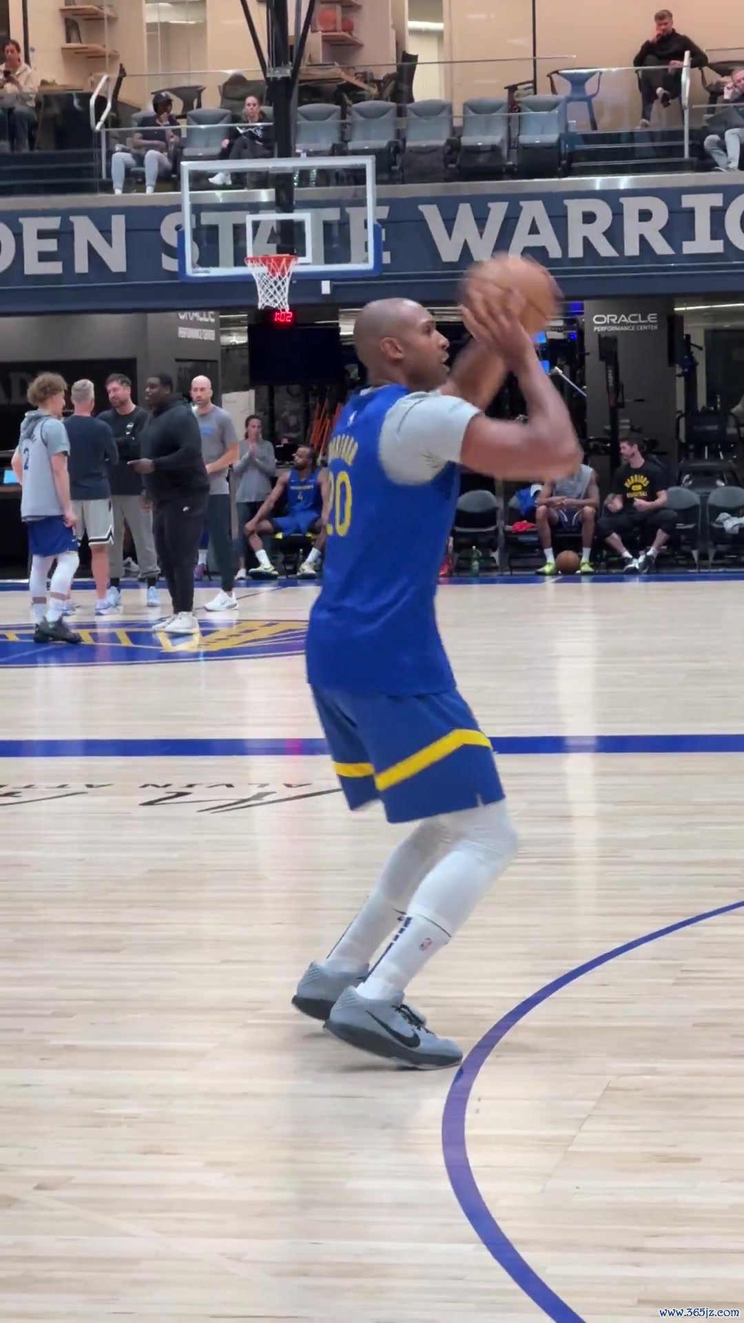 湾区记者Matt Lively晒出视频, 尤文图斯足球直播霍福德已经身穿勇士20号练习 服开始了投射练习 。