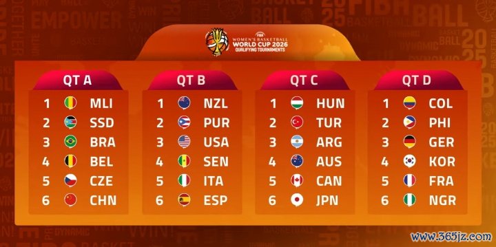 10月08日讯 2026年女篮世界杯赛 预选赛抽签结果出炉,24支球队被分为4组进行赛事 。