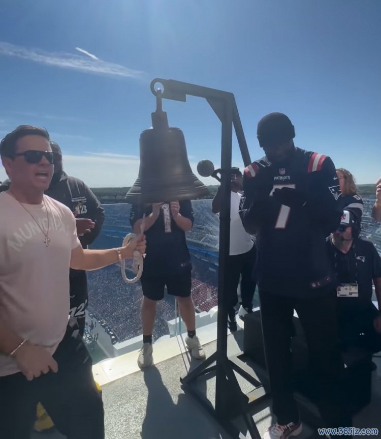 杰伦-布朗带队观看爱国者赛事 和影星沃尔伯格一起为球队敲钟开赛