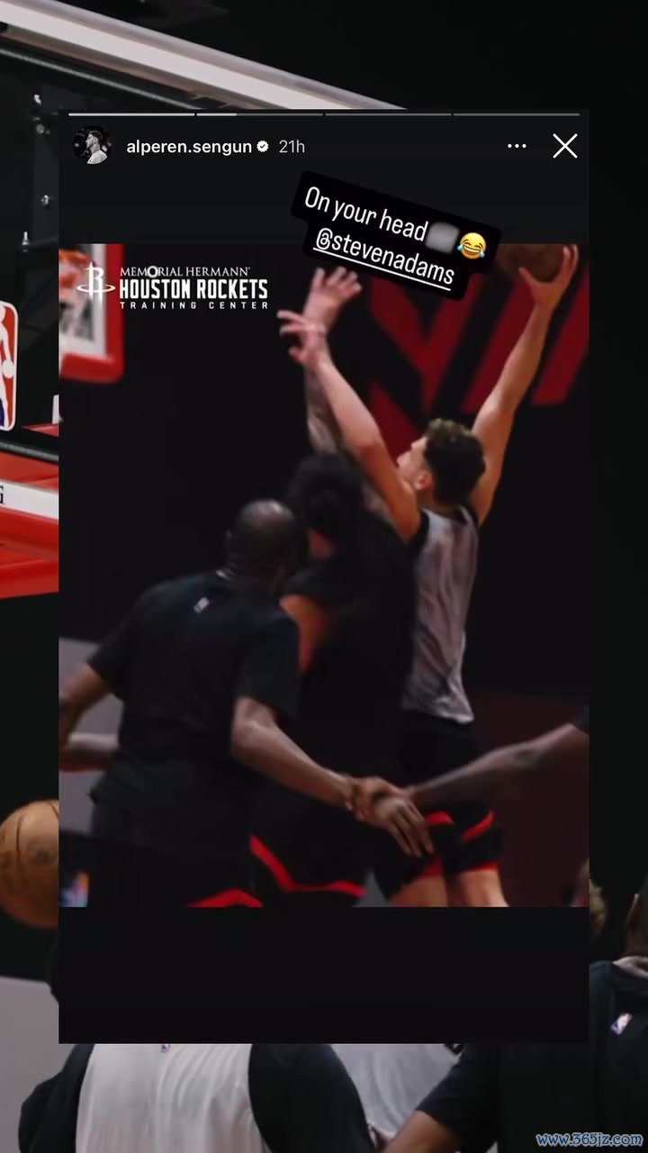 10月3日讯 火箭官方晒出球队练习 视频,亚当斯与队友协作 后在申京头上完成空中接力暴扣。