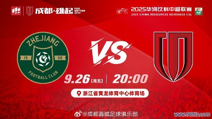 中超职业联赛 第26轮⚽浙江vs成都蓉城 周五20:00浙江省黄龙体育中心