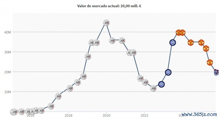 奥纳纳2023年夏窗以5000万欧元从国米转会曼联, 尤文图斯足球直播当时他的身价为3500万欧元。加盟曼联后奥纳纳的身价涨至4000万欧元, 中超此后多次下跌。