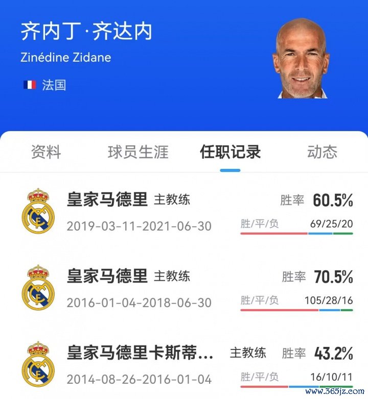 齐达内2021年再度卸任皇马主帅一职后便一直赋闲,他曾带领皇马获得欧冠第一名 、西甲第一名 等多项荣誉。