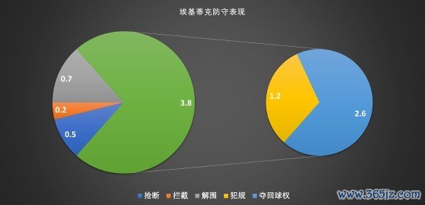 虽然抄截 +阻拦 +解围达到每场1.4次并不算是很突出的成绩单,但不要忽略了,埃基蒂克场均还有1.2次违例 ,以及2.6次抢回球权。