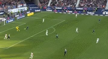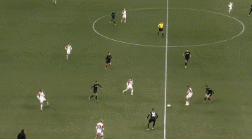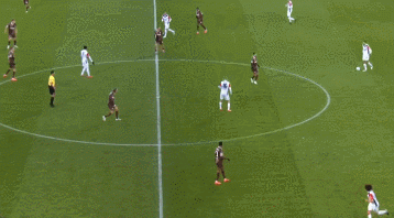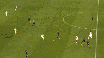 再来看看这一次的攻击 ,依旧是背身回做后反插,埃基蒂克在对方的侧翼撕开一条口子。虽然自己带球内切危险区域 冲破 没能成功,但还是把球权控制了下来。
