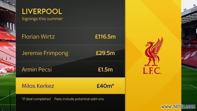 已经官宣的4名新援花费了利物浦2.13亿欧元转会费,埃基蒂克入队后,支出必然超过3亿欧元。如果还有格耶和罗德里戈,那么转会费总支出将会冲破 4亿欧元大关。