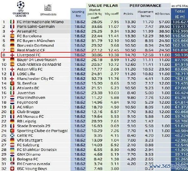 哪怕说利物浦止步欧冠16强,不过他们依旧得到了9813.5万欧元的收入,与其他一些止步8强的球队相比,可谓非常接近。
