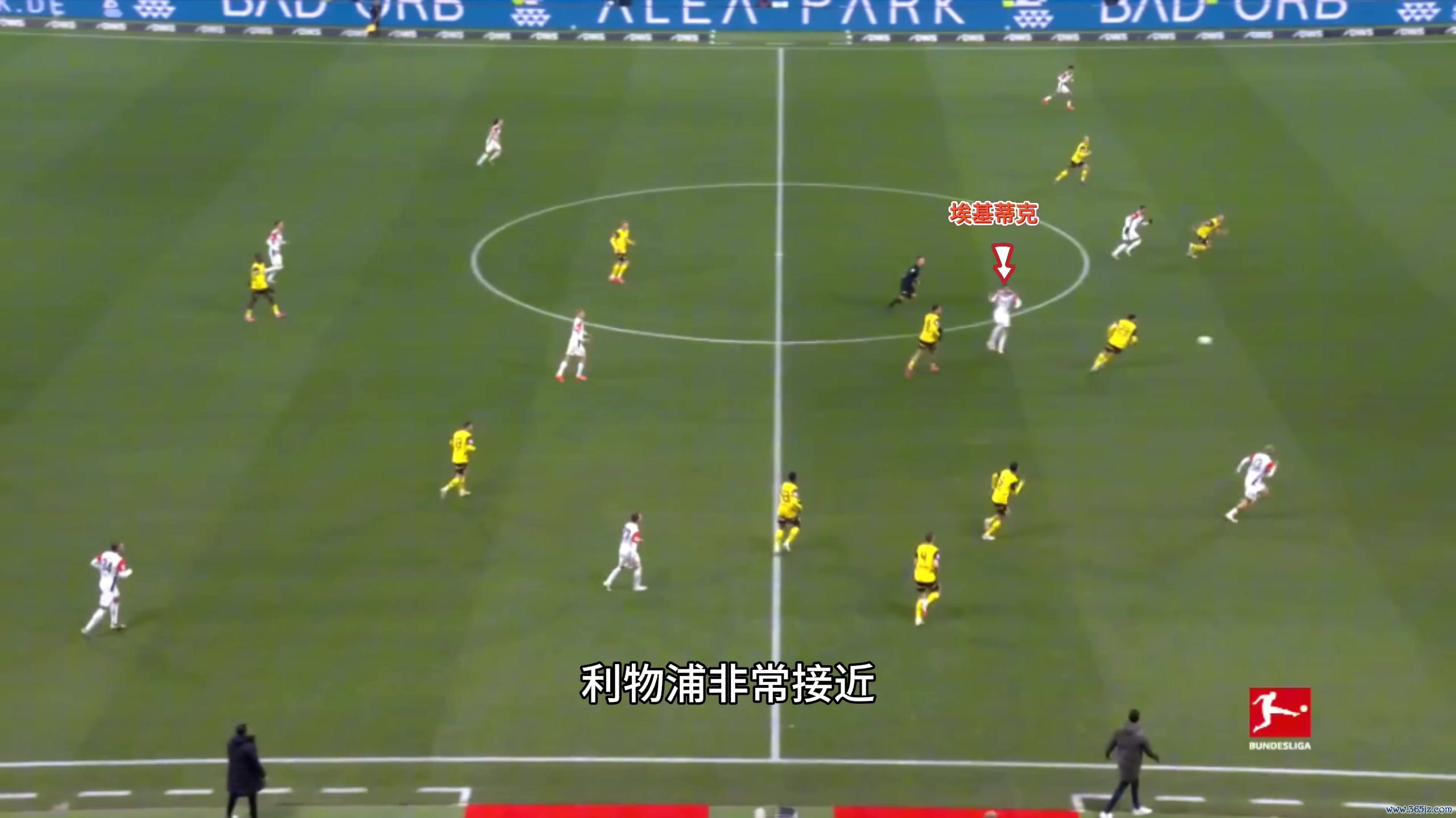 随后观察到大危险区域 正面一片开阔地,埃基蒂克及时把球传过去,可惜队友射球 打飞了。应该说埃基蒂克让利物浦喜欢的,就是他的跑动范围和持球能力,可以带动反击的发起,也有利于后排跟进。