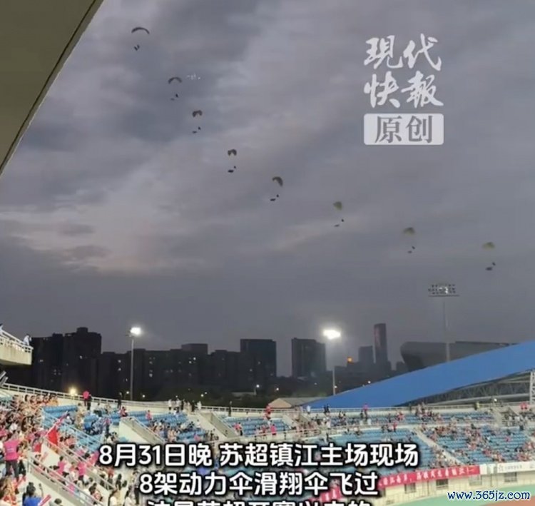 8月31日讯 据《当代 快报》报道,今晚苏超镇江主场作战 现场,8架动力伞飞过,这是苏超开赛以来的首次动力伞飞行表演 ,巴黎圣日耳曼也是镇江体旅融合的新模式。