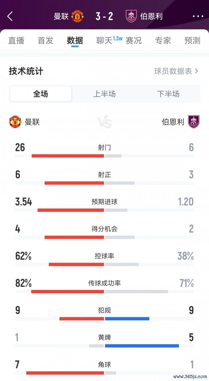 数据碾压却惊心动魄!曼联狂射26脚,预期得分 高达3.54!