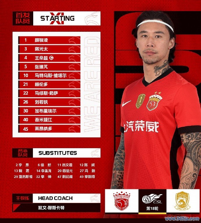 中超职业联赛 第18轮上海海港vs青岛西海岸,今日杆位名单