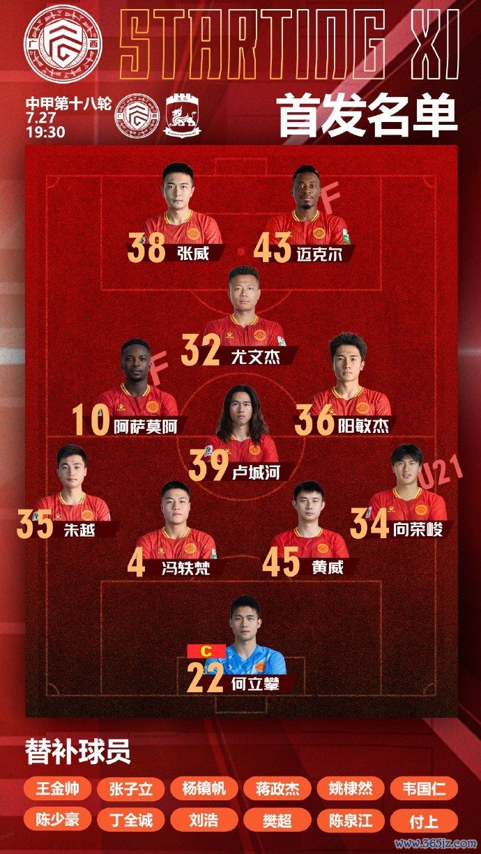 中甲级职业联赛 第18轮,广西平果国晶主场作战 对阵苏州东吴杆位名单!