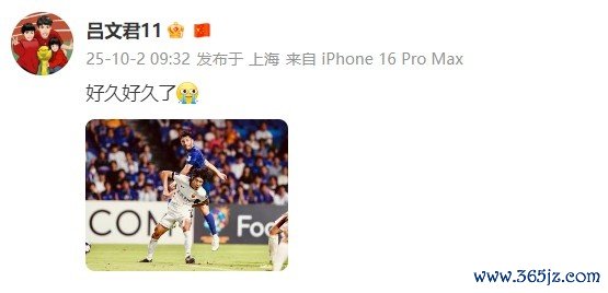 本场赛事 海港老将吕文君在第64分钟后备 登场。他赛后更新了个人社媒, 中超英超直播晒出本场赛事 照并写道:“好久好久了。”